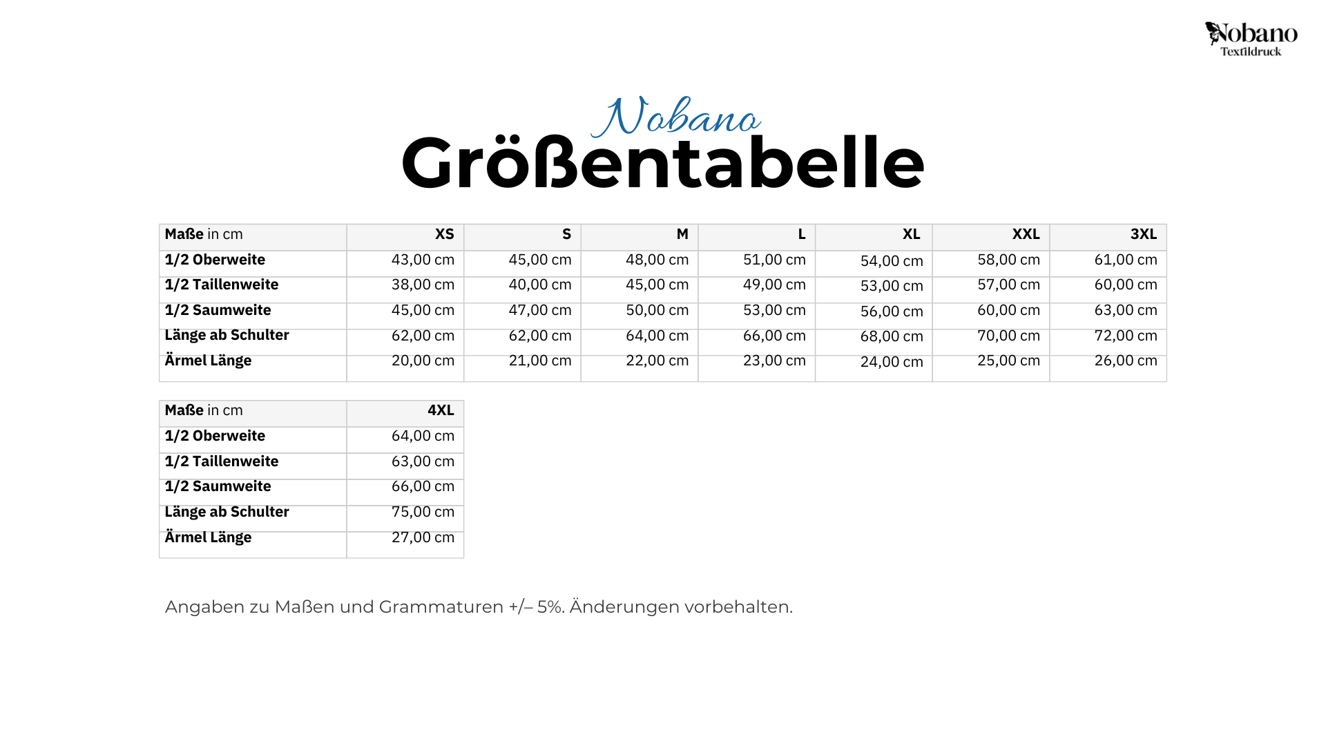 Größentabelle