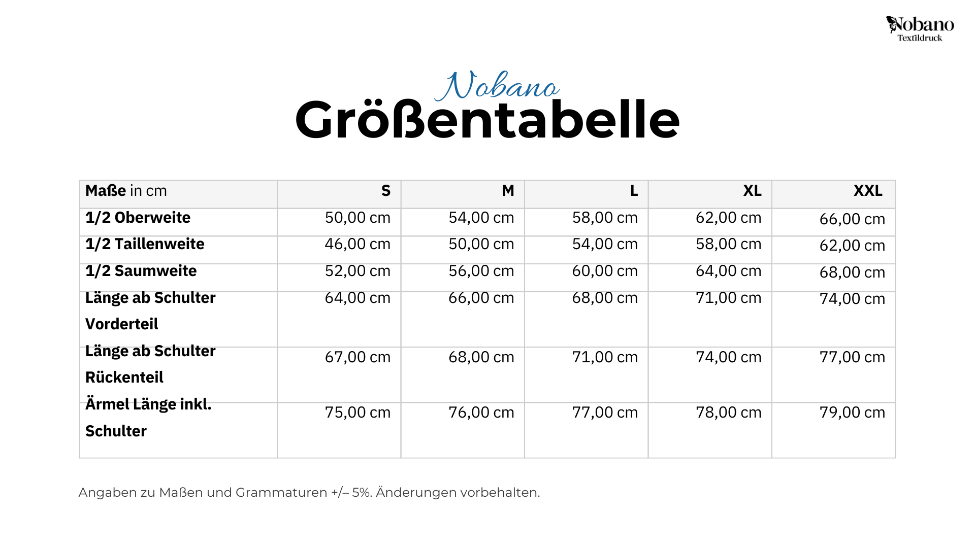 Größentabelle