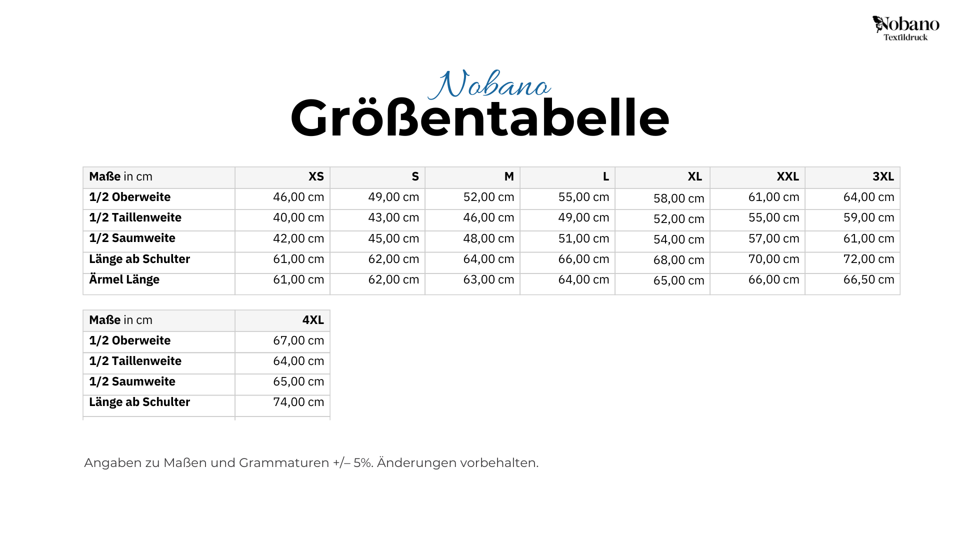 Größentabelle