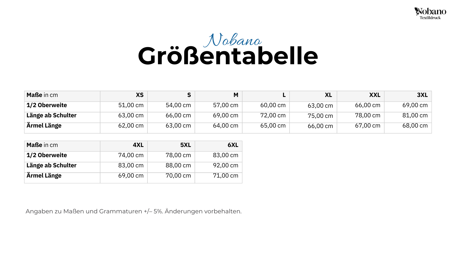 Größentabelle