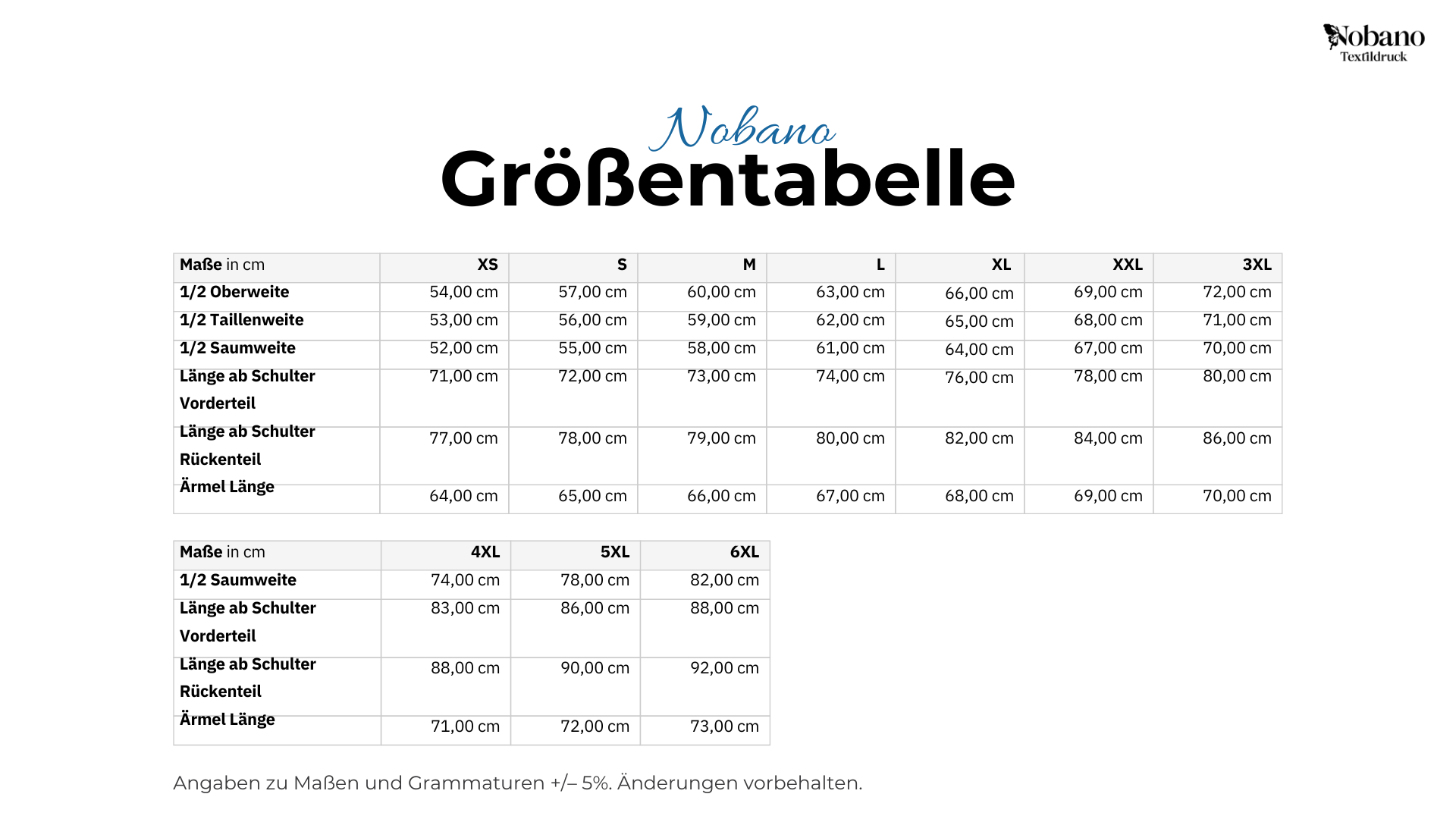 Größentabelle